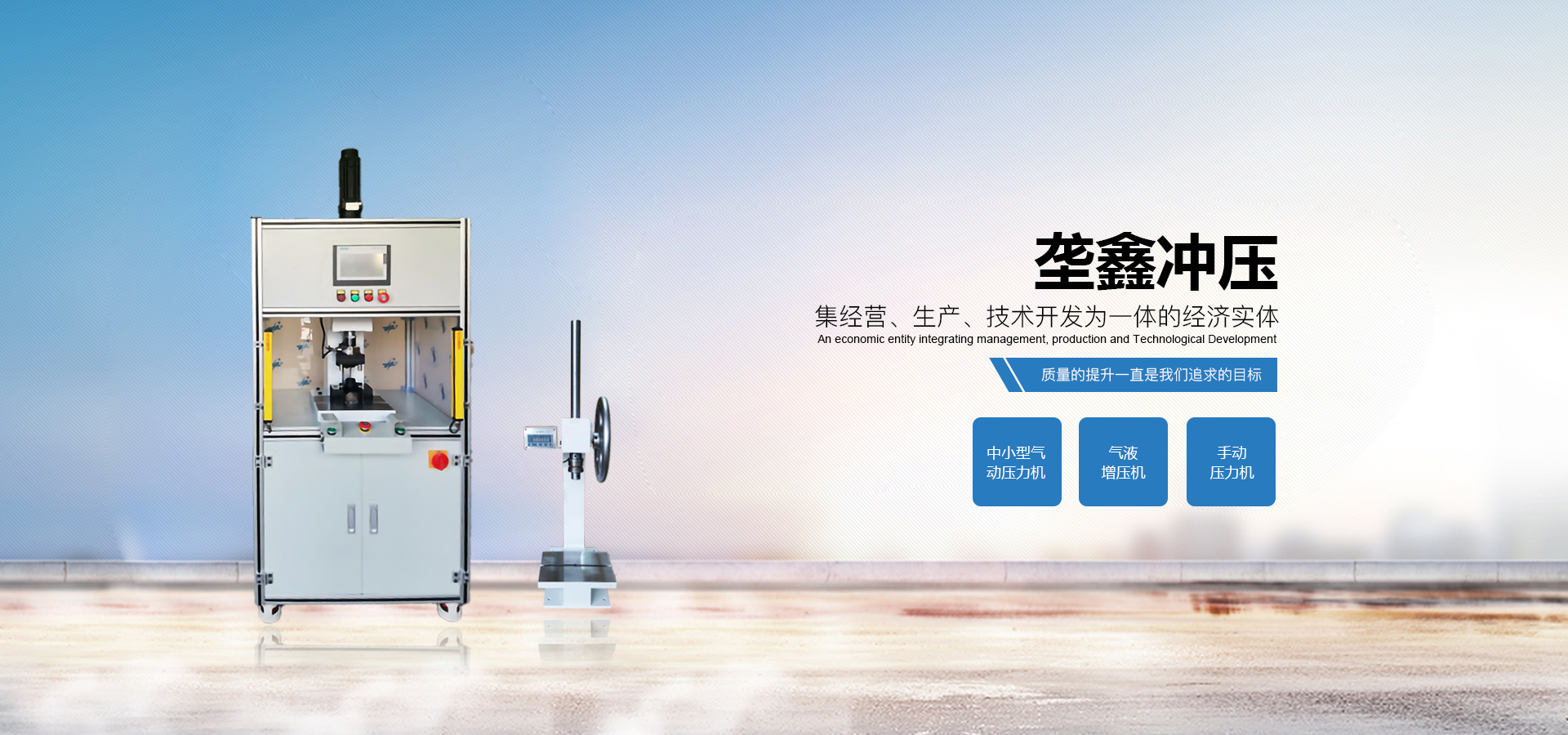 煙臺壟鑫沖壓設備有限公司是集經營、生產、技術開發(fā)為一體的經濟實體,專業(yè)致力于中小型壓力機、非標壓力機的設計開發(fā)和制造。在引進德國、日本等國家先進的鉚壓控制技術及機器設計理念的基礎上,結合相關行業(yè)的實際需要,開發(fā)出各種臺式、落地式氣動壓力機、手動壓力機、氣液增壓機、氣液增力缸、旋鉚機、無鉚釘鉚接機等鉚接設備。產品應用領域廣泛,適用于汽車零件、電子、電器、家電、包裝、五金、等行業(yè)。公司視質量為生命,并一貫遵循對每一臺產品負責,對每一位用戶負責,真誠為您服務。 自公司成立以來,秉承“誠信,創(chuàng)新,專業(yè)”的經營理念,以優(yōu)質的產品,完善的售后服務,樹立良好的品牌形象,服務于廣大新老顧客。我們竭誠于各位同仁攜手并進,共謀發(fā)展。
